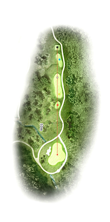 디테일한 거리를 측정하는 지류를 넘어라. 내려치는 전형적인 전략형 홀이다.