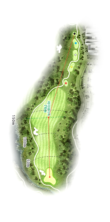 변별력 높은 홀, 높은 집중력과 테크닉 요구, 길지 않은 파4 홀이지만 방심할 수 없다.