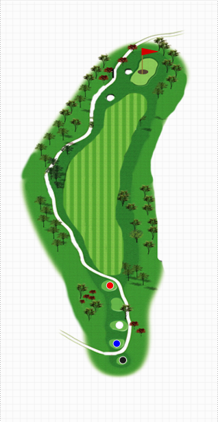 Tee Shot을 페어웨이 가운데로 보내야 세컷샷이 편안하다. 넓게 펼쳐진 Fairway는 Player를 편안하게 감싸 안을 것처럼 보이지만 Green 공략이 Player를 괴롭힐 것입니다. Tee Shot은 좌측 Bunker 방향으로 보내야만 Green을 방어하고 있는 Side Bunker의 유혹에서 빠져 나올 수 있습니다. Teeing Ground 앞의 호수는 Tee Shot시 Player의 마음을 편안하게 안정시켜 주지만 긴장의 고삐는 늦추지 마시길 바랍니다. Second Shot시 한 클럽의 여유를 가지고 공략 하는게 좋습니다.