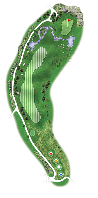 우측에 있는 ROCKY MOUNTAIN을 돌아보면 정상에 서 있는 착각 속에 절로 심호흡을 하게 된다.그린은 2단이며 폭이 좁고 긴 모양이고 그린 입구부터 우측으로 연못이 있다. 핀대 위치에 주의해서 클럽을 선택해야 하며 거리가 짧거나 슬라이스가 날 경우 우측 연못을 조심해야 한다. 코스맵