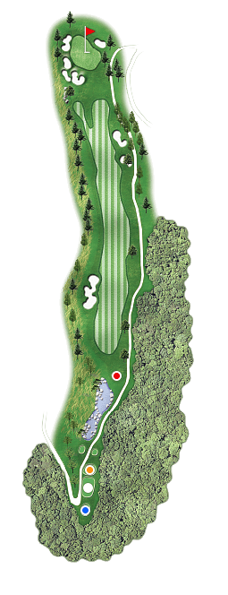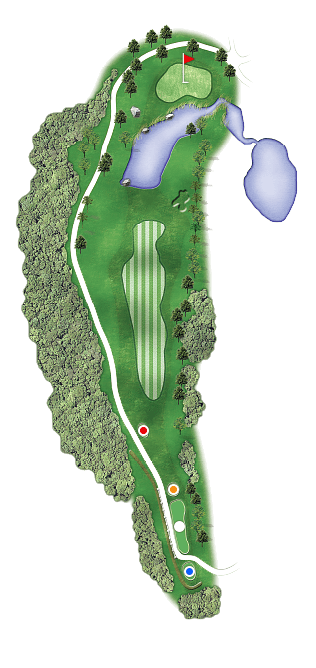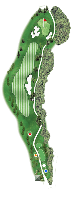 잣나무 골짜기로 형성된 페어웨이는 아늑하고 포근한 느낌을 주고 양측이 OB이며 페어웨이 폭이 좁으며 그린 바로 앞부터 100YD 지점까지 연못이 버티고 있어 많은 부담을 주고 있다. 티샷은 거리보다는 방향을 장타인 경우 페어웨이 우드로 공략하는 것도 바람직하다.