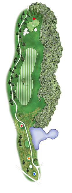 제일 높은 지역에 위치한 홀로써 블루 티에서는 레귤러 티에 심어진 나무가 티샷에 부담을 준다. 티샷을 IP지점 좌측 벙커와 우측 경사면의 벙커 사이로 공략하고 좌, 우측은 OB이므로 주의해야 한다. 그린 앞과 우측에 깊은 벙커로 둘러싸여 있어 세컨샷의 길이 조정이 중요하다. 코스맵