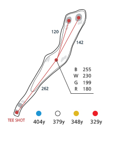 그린은 ONE 그린이며 양쪽OB입니다. 티샷은 약간 우측으로 공략해야 하며, 세컨샷 공략시에도 좌측 항아리 벙커에 빠지면 한번에 핀에 붙이기 힘들어 정교한 샷이 요구됩니다. 세컨샷은 올려치는 곳이므로 클럽은 한 클럽 길게 선택합니다.