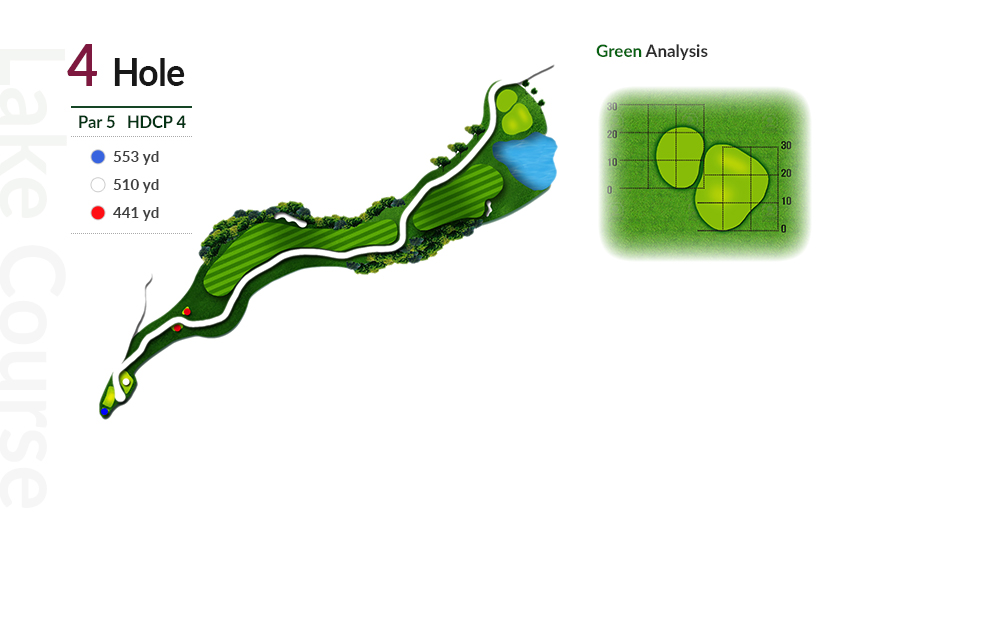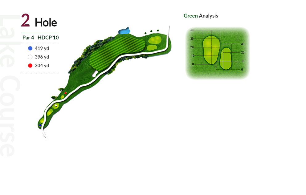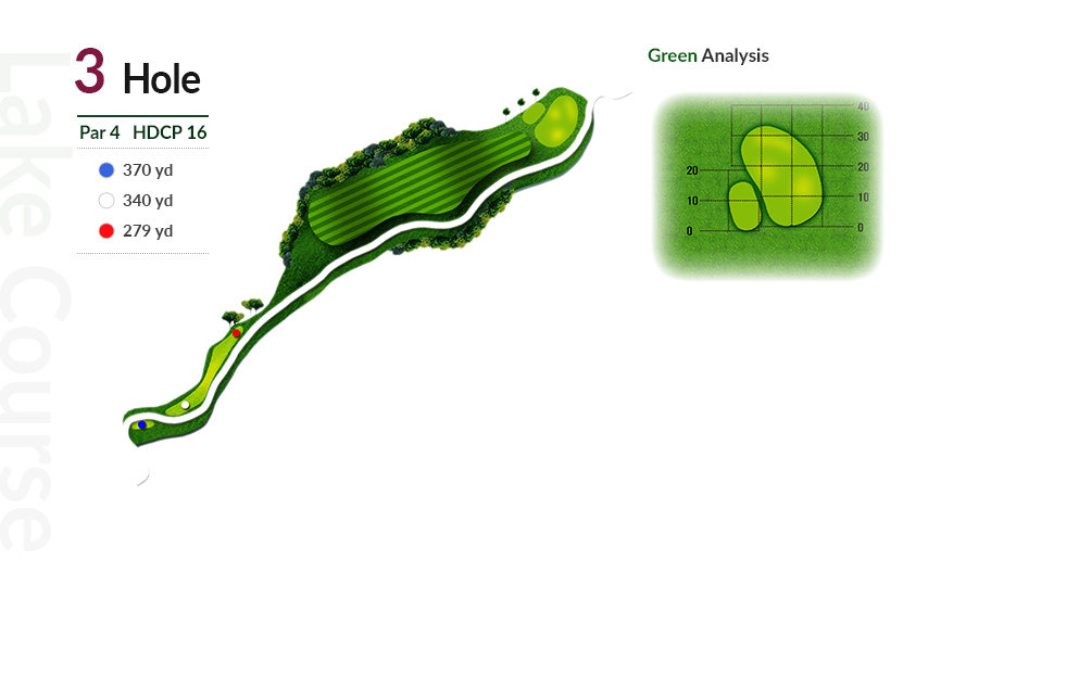 티샷 방향에 따라 2~3클럽 차이가 나는 홀입니다.