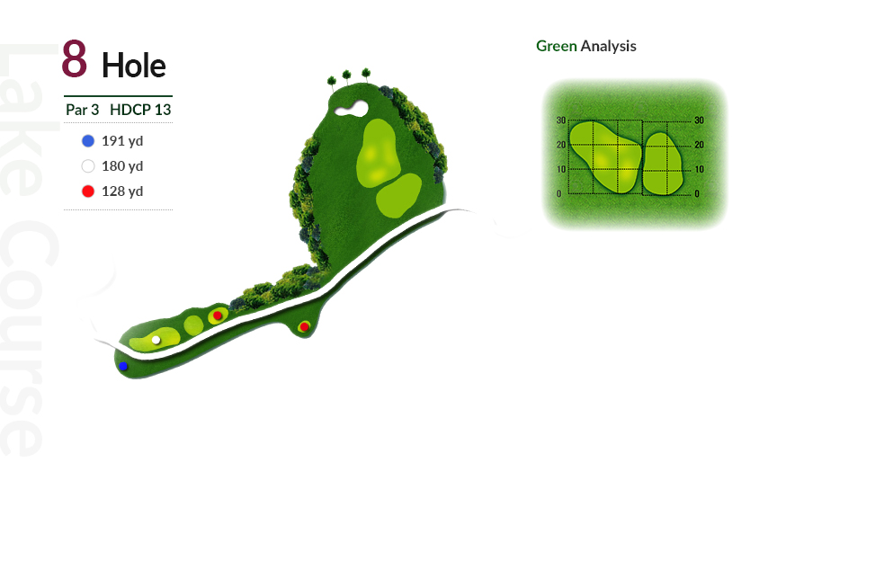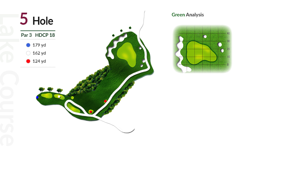 그린 좌측으로 긴 벙커가 위협적인 파3홀입니다.