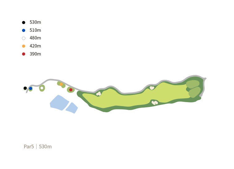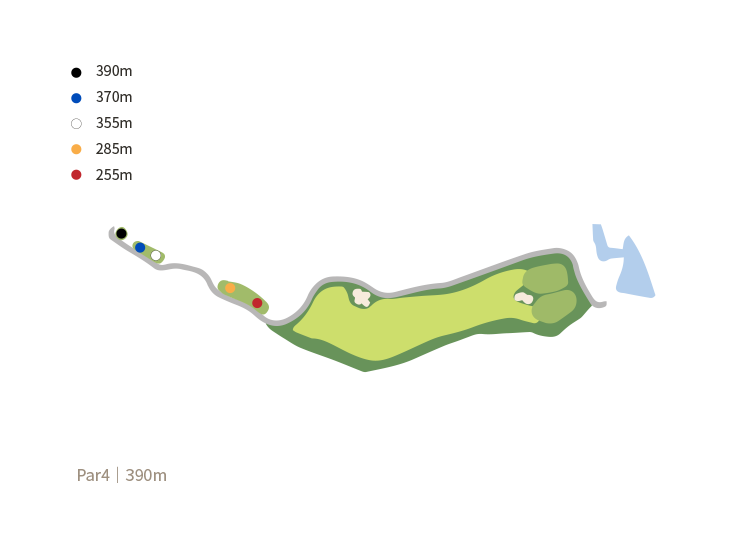 넓은 페어웨이라서 티샷을 최대한 멀리 보내야 다음 세컨 샷시 짧은 아이언으로 그린을 공략할 수 있다.