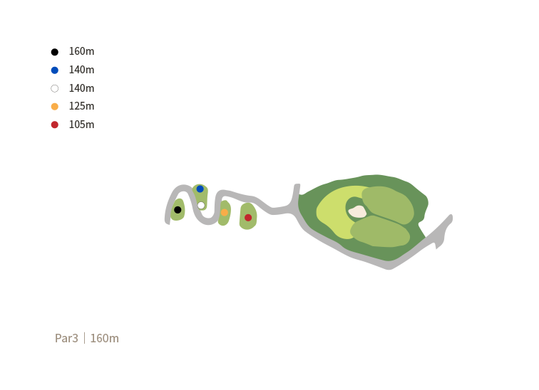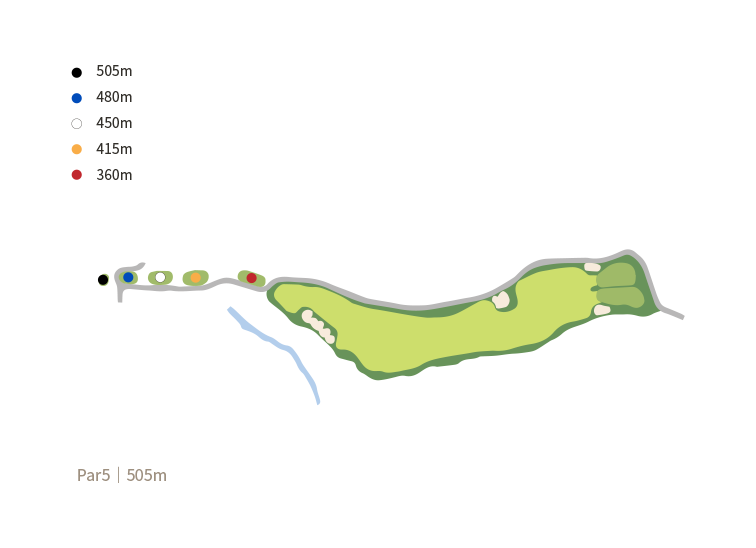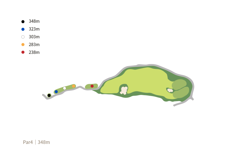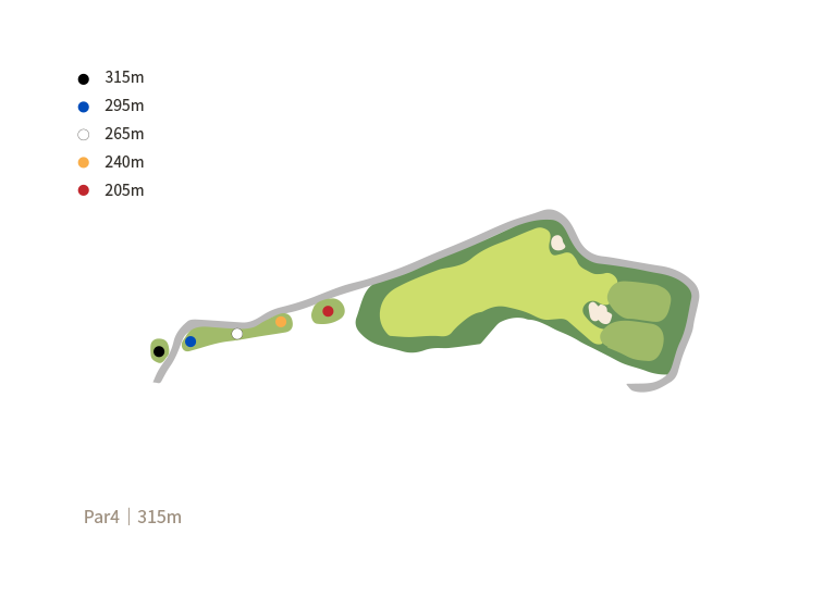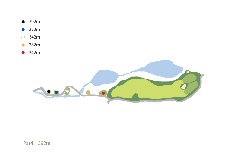 우 그린일경우 페어웨이 우측에서의 공략이 유리하고 좌그린일 경우 페어웨이 좌측에서의 공략이 베스트이다.