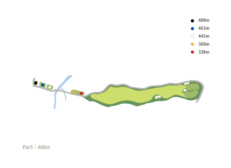 길지 않은 Par 5 지만 투온은 약간 어렵고 짧은 어프로치로 버디를 도전해 볼 만하다.