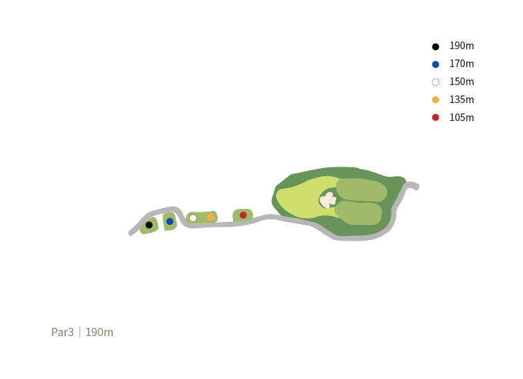 거의 수평하고 워터 해저드를 건너 쳐야 하는 난이도 높은 Par 3 홀이다.